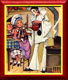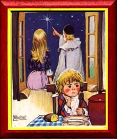 ![]() C'est la lumière qui nous manque. Le vieux monde nous éblouit D'or et d'argent sorti des banques. Souhaiter joie, santé, bonheur, Pierrot rêve d'une nuée D'oiseaux de la paix, migrateurs Venus d'un monde inexistant Créé par ses amis poètes, Pour témoigner qu'à tout instant L'Amour est la seule vraie requète. ![]() Les guirlandes,peu à peu,s'éteignent... Et passent les ombres affamées, La neige recouvre les enseignes. Pierrot prépare avec amour La soupe chaude de ventre-vide Qui attend l'arrivée du jour. Recouvert de son manteau blanc, Doit au printemps céder la place, L'espoir est encore sous le banc! ![]() La nuit achève d'envelopper Les blancs manteaux des résidences, Lumières cachées pour vents stopper. On sert encore avec amour La soupe chaude de ventre-vide Qui attend l'arrivée du jour. Préparer une boisson chaude Et faire plaisir à ses amis Puis s'en retourner chanter laudes. ![]() Voici notre étoile, mon amour! En plein hiver, fenêtre ouverte, Ce que racontent nos deux amis, Alors que la rue est déserte. Pierrot explique à son amie Que chaque vie nous est donnée Pour accomplir un rêve d'amour. A porter ce message de paix Se sont transformés en étoiles Dans un monde peuplé d'Infini. ce sont des lumières d'amour! ![]() Et la nature se fait attendre. Les jours grandissent à la fenêtre, Mais la bise s'y fait entendre. L'hiver n'empêche pas de rêver. Il faut alors jouir d'un temps D'intimité à préserver. Que Pierrot joue avec amour, Les amoureux, les romantiques Ont tous connu cela un jour...