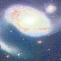 NGC 4319 Des étoiles sans nom, Numéro sur la toile, Elles n'ont pas de prénom ! Elle était, elle n'est plus, juste le temps de paraître. Les hommes l'ont trouvée, mais ne la connaissent guère, Avant son extinction, ils peuvent disparaître. Parmi tant de millions, Le rêve hisse la voile Vers d'autres horizons. Le monde du petit a pu le rendre fier, Mais l'homme s'est aperçu qu'il ne connaissait guère Qu'une infime partie des mondes de l'univers. A des années-lumière. La distance est un voile, Aujourd'hui c'est hier. A tous les pèlerins qui font le tour du monde, Puis s'en reviennent chez eux, tout auprès de leur belle, Ayant cherché bien loin ce qu'ils ont à la ronde. Je te vois de mes yeux, Près de moi et sans voile, Tu restes Mystérieux! 2004-02-16 06:56:20 La galaxie NGC 4319, "proche" de la terre, à 80 millions d'années-lumière La lumière perçue de cette galaxie a été émise alors que cette dernière n'était âgée que de 750 millions d'années et elle a mis plus de 13 milliards d'années-lumière à parvenir jusqu'à la Terre, selon les chercheurs. ![]()