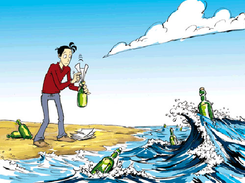 La brise marine du matin m'apporta un message imprévu... Je venais de trouver sur la plage une étrange bouteille..... un clic ci-dessous, chanté par Balavoine: "Comme un fou va jeter à la mer