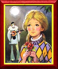 Si tu ne m'entends point, Quand tu penses aux souvenirs De tes amours lointains. Le bonheur... Il te rejoindra. Il fleurit même sur les cactus, Et bientôt il te reviendra ! Se succèdent à grande vitesse... Pierrot paraît bien débonnaire De jouer pour que cela cesse ! Quand je te pense,te chante, t'écris. J'ai des notes d'amour plein la tête, Quand je t'aime comme Amadis. ![]() L'été est là, sorti de terre. Mon amie danse avec mon coeur. Pierrot anime les parterres, Son pinceau y plante des fleurs. Parfums, nectars embaument l'air. Les amours comblent l'univers, Chantent les oiseaux musiciens. P.F. ![]() Chacun s'en va de son côté. Pierrot rêve dans son sampan, A sa belle qu'il va retrouver. Le voyage devient un problème, Si l'on écoute Bison Fûté, Adieu à la vie de bohème. Nous partirons en mongolfière. Les vents vont tous nous transporter, Au loin, par delà les frontières. |